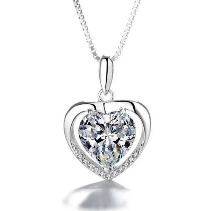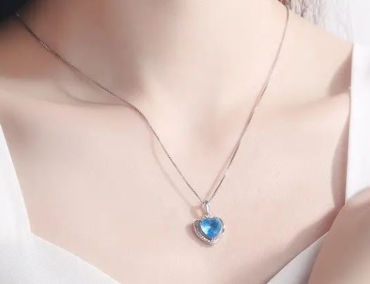 2. Women charm necklace jewelry 925 sterling silver pave blue CZ zircon Love Heart pendant