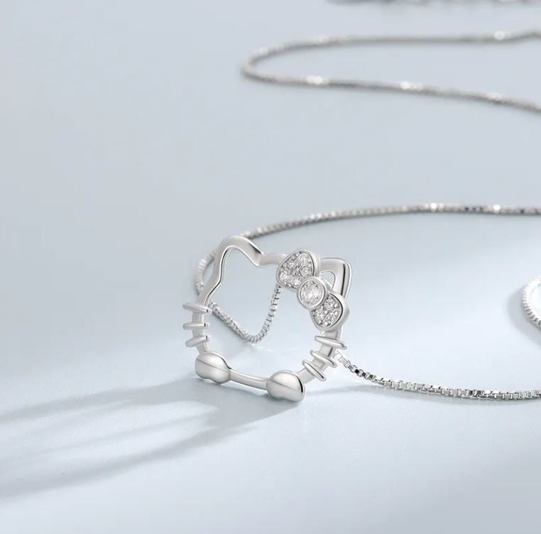 925 Sterling Silver Necklace hello Kitty Cat Hollow Necklace Women/ Girl