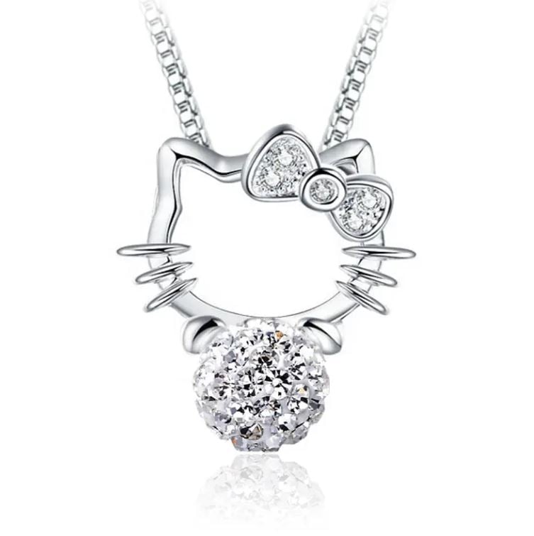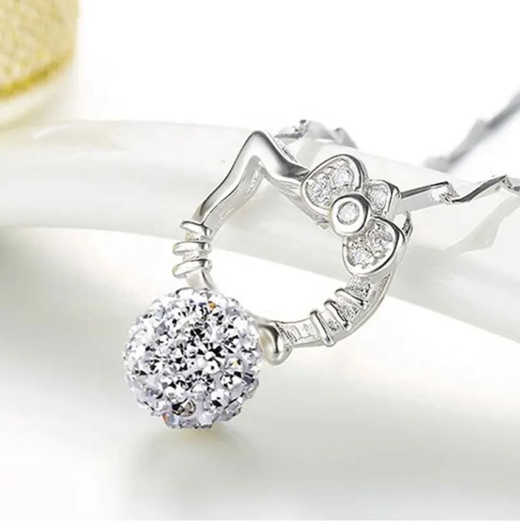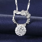 Diamond Ball Cat Pendant Necklace Charm 925 Sterling Silver Hello Kitty Cat Necklace girl/ Women